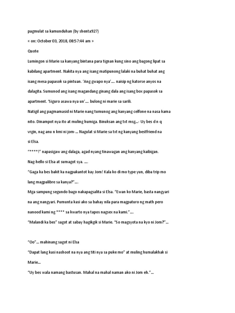 Pinaiimbestigahan na ng lokal na pamahalaan ang. Ramdam pa rin ni Isabel ang mainit na katas ni Primitivo sa loob ng kaniyang pagkababae. Para siyang sanggol na nauuhaw sa gatas ng isang ina dahil sa ginagawa niyang pag ut-ot sa kaliwang suso nito at ang tunog noon ay hindi naiwasan.